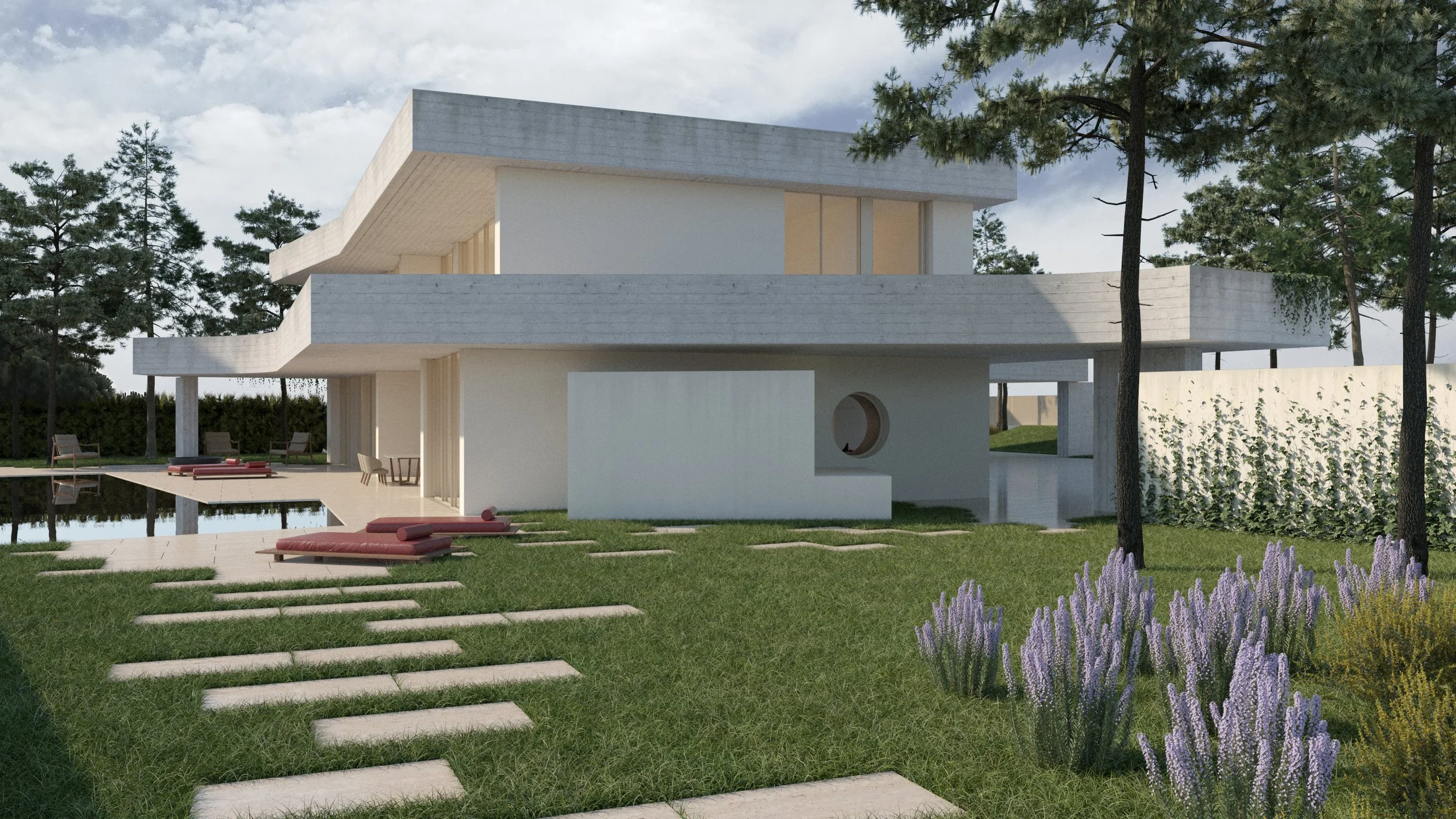 Procurou-se ainda, através da criação de uma estrutura de sombreamento em betão armado em torno de toda a casa, que permite uma maior permanência e fruição dos espaços exteriores ao longo de todo o ano. Além disso, essa estrutura define novas circulações externas e atua como agente modernizador e agregador do conjunto.